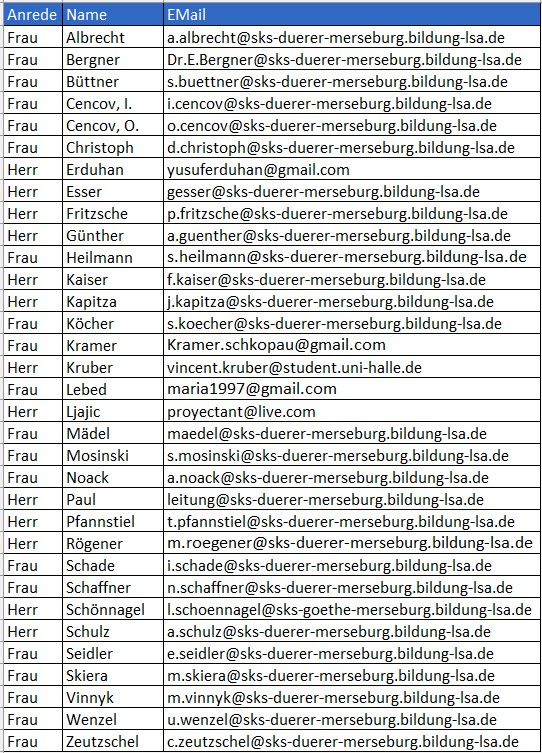 Die dienstlichen Mailadressen der Lehrkräfte finden Sie hier.